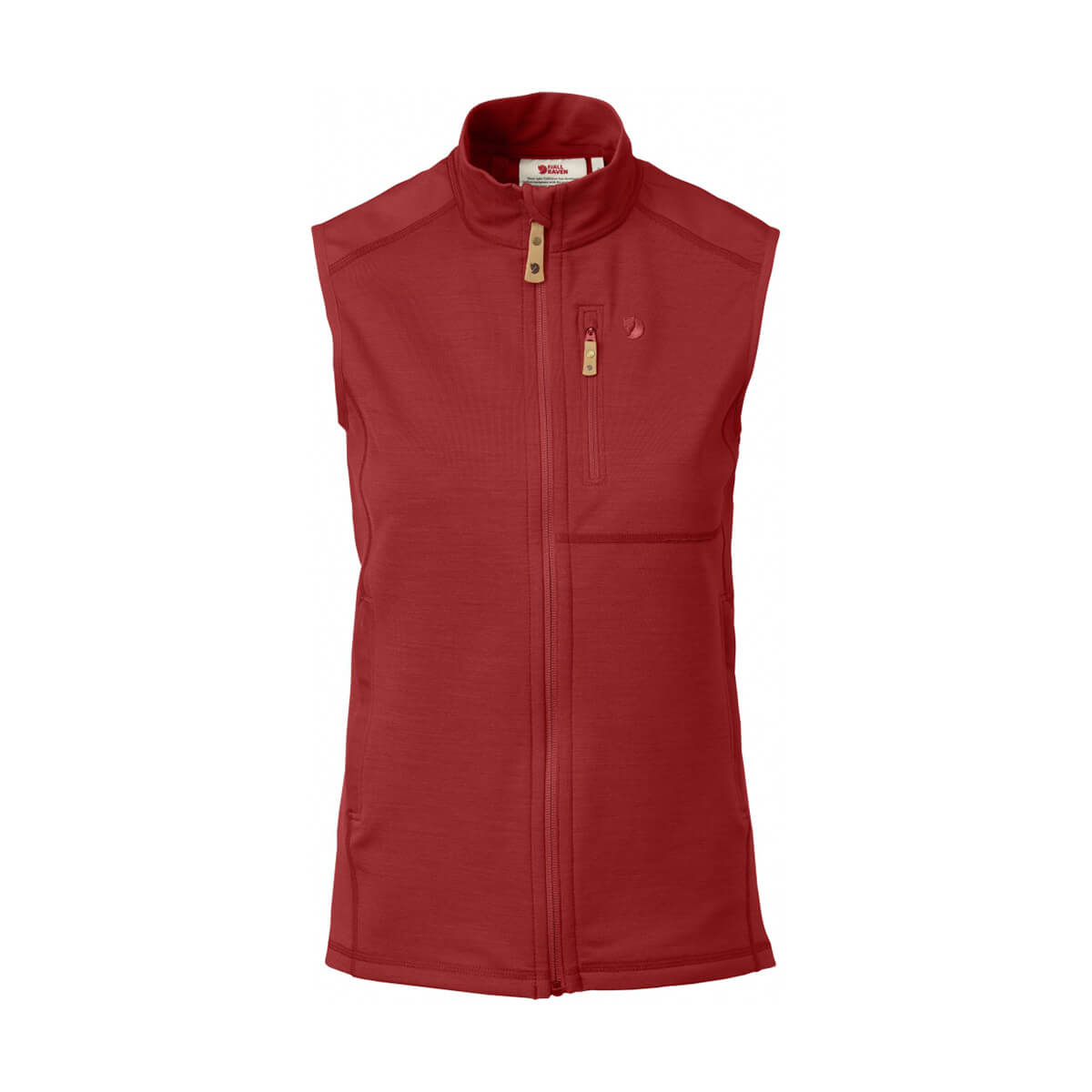 以部分的的再生聚脂纖維、羊毛和彈性纖維混紡而成的刷毛背心,在肩部搭配以G-1000®Eco的耐磨材質,適合作為健行、滑雪時的中層加強保暖。